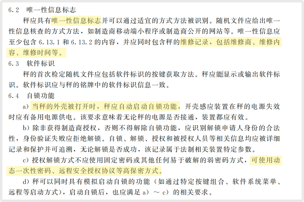 此項要求意味必須在硬件層面具備“非法開殼即觸發(fā)鎖死”的功能。任何試圖打開外殼以改裝的行為,都將導(dǎo)致設(shè)備無法使用,解鎖必須通過官方授權(quán)的動態(tài)密碼完成。這從物理根源上終結(jié)了“鬼秤”的制造途徑。
